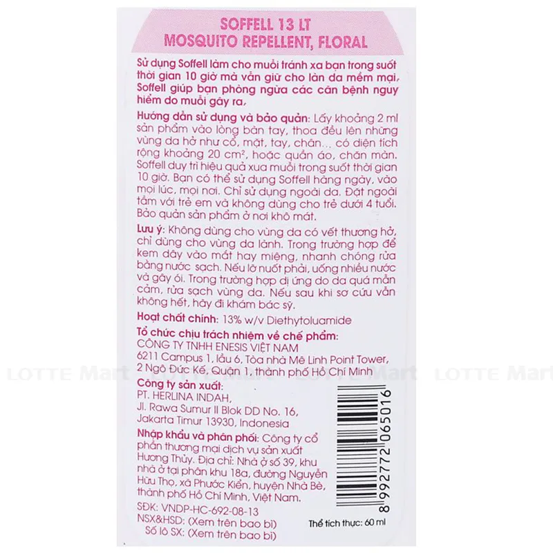 - Kem Chống Muỗi Soffell Hương Hoa 60ml là sản phẩm kem chống muỗi nhằm ngăn ngừa các bệnh truyền nhiễm do muỗi mang lại. Sản phẩm có hương hoa thơm mát tự nhiên, hiệu quả chống muỗi lên đến 10 giờ đồng hồ.