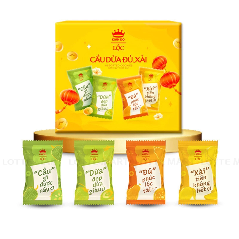 Bánh Quy Kinh Đô Cầu Dừa Đủ Xài được lấy cảm hứng từ mâm ngũ quả ngày Tết của người Việt, với tên gọi "Cầu Dừa Đủ Xài" mang ý nghĩa cầu chúc gia đình đủ đầy, sức khỏe và tài lộc.