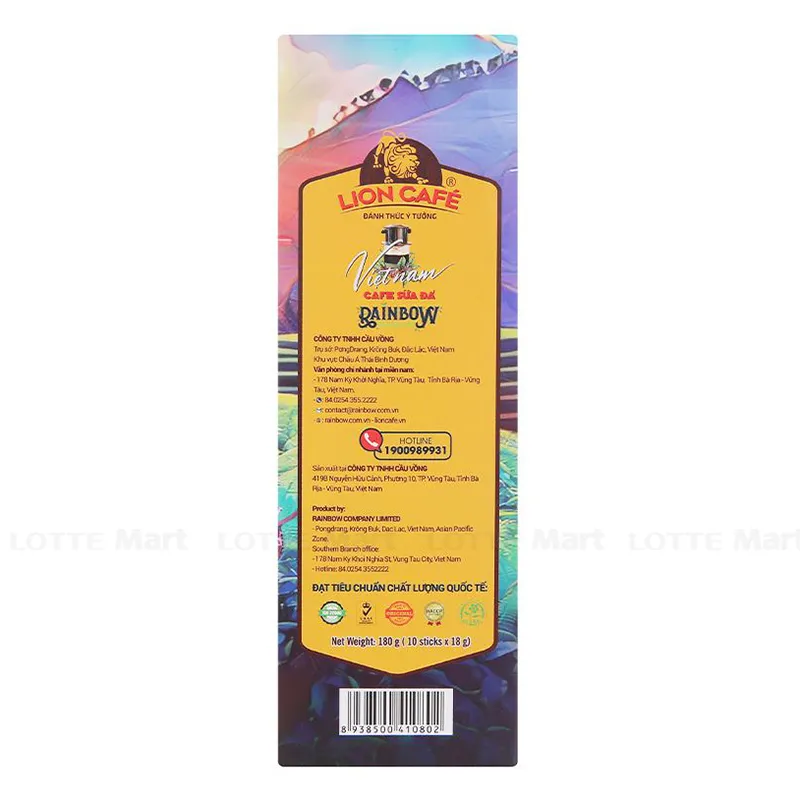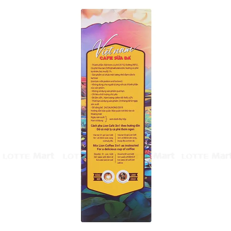 - Cà Phê Lion Sữa Đá Hộp 10 Gói 18G giữ nguyên nét đặc trưng riêng biệt của cà phê sữa đã Việt Nam, sử dụng thành phần gồm sữa đặc phun sấy, bột kem cà phê (41%) hòa quyện cùng hỗn hợp cà phê hòa tan (18%) và cà phê rang xay mịn màng. Do đó, sản phẩm sở hữu hương vị thơm ngon đúng vị cà phê sữa đá Việt Nam đem đến cho người tiêu dùng trải nghiệm rõ nét và chân thật nhất.