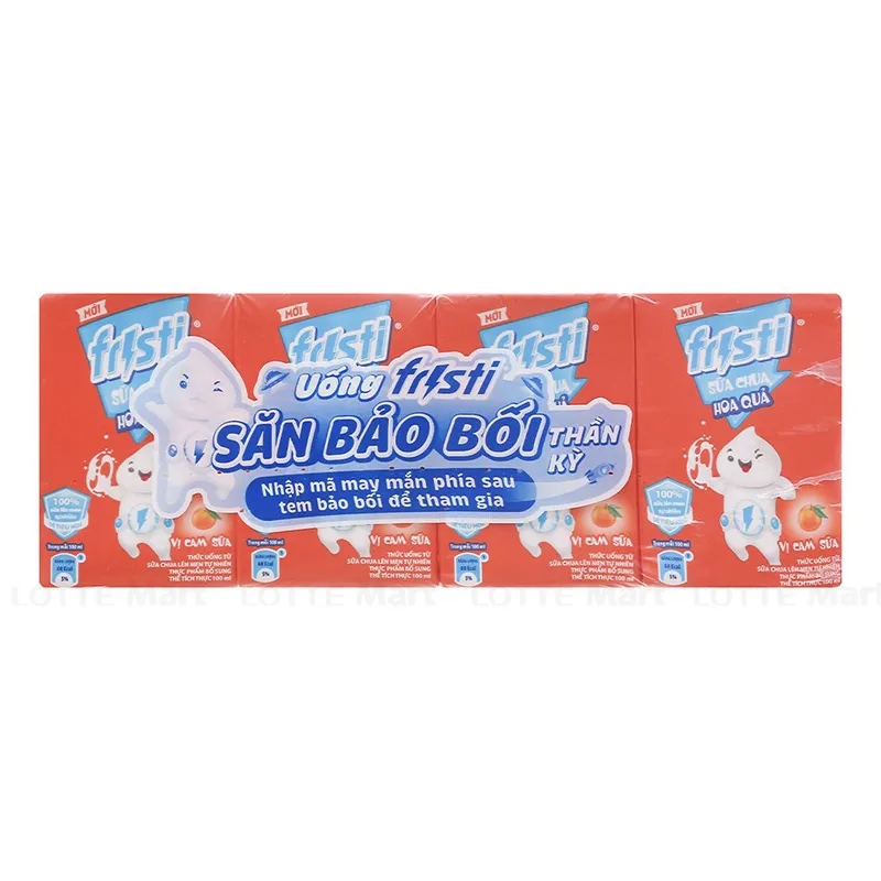 - Sữa Chua Uống Fristi Vị Cam Lốc 4 Hộp 100ml được làm từ sữa chua lên men tự nhiên kết hợp cùng hương vị cam tươi tự nhiên tạo nên vị chua ngọt đặc trưng, thơm ngon, hấp dẫn. Cung cấp 20 dưỡng chất thiết yếu như Canxi, Đạm, Vitamin B2 bổ dưỡng, giúp bạn luôn năng động và khỏe mạnh.