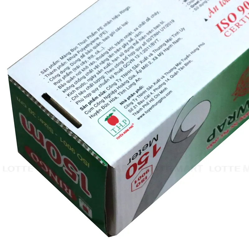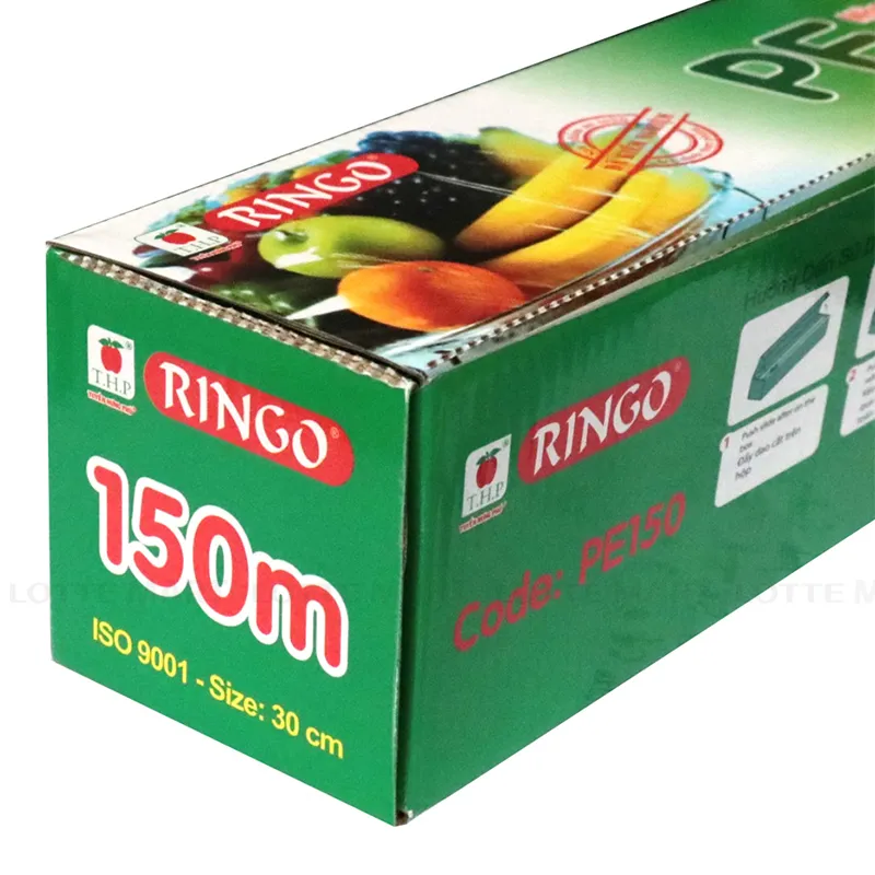 Màng Bọc Thực Phẩm Ringo PE 30cm x 150m là sản phẩm giúp bảo quản thực phẩm có thể được sử dụng linh hoạt với mọi hình dáng, kích thước của vật cần bảo quản. Nó tạo ra một màng mỏng cách ly sự tiếp xúc giữa thực phẩm với bụi, nước - tác nhân gây giảm thời hạn sử dụng của thực phẩm. Ngoài ra, màng nhựa trong suốt có thể giúp người dùng có thể quan sát thực phẩm một cách trực quan trong suốt quá trình bảo quản.