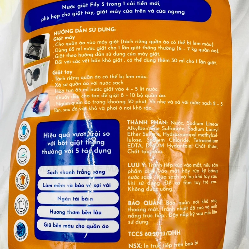 - Giặt máy: 45ml cho 1 lần giặt thông thường (15 - 20 chiếc quần áo).