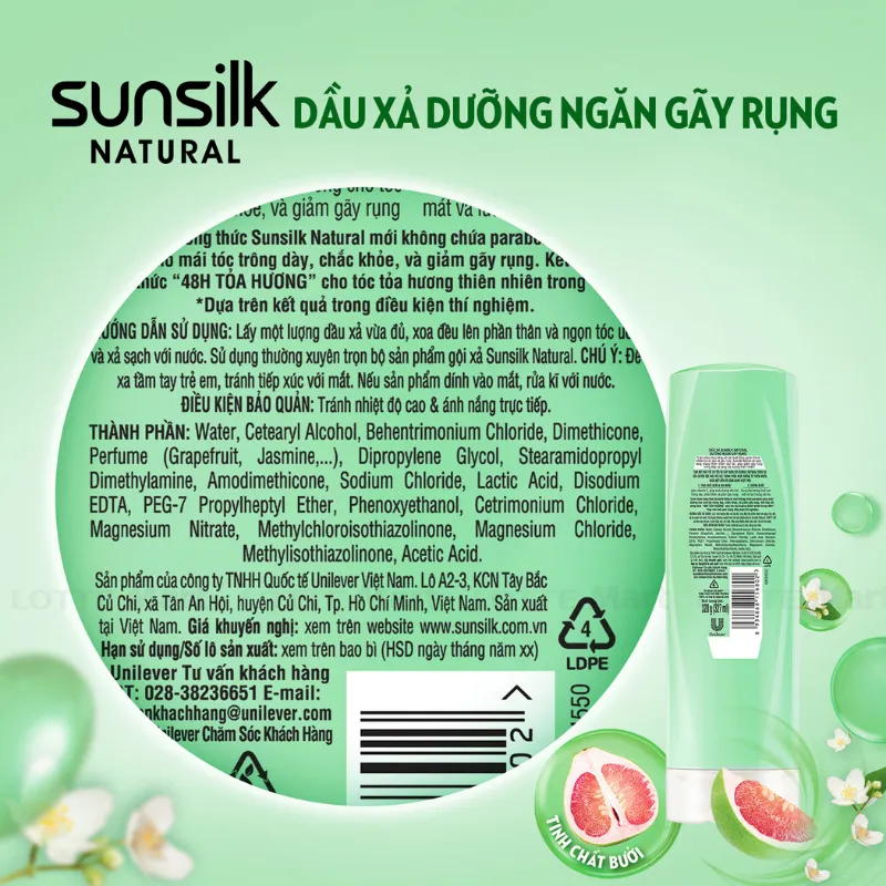 Hướng dẫn sử dụng: Lấy một lượng dầu xả vừa đủ và thoa đều lên phần thân và ngọn tóc ướt, xả sạch với nước sau 1 phút. Để có mái tóc đẹp hơn, hãy sử dụng kết hợp với dầu gội Sunsilk Natural Dưỡng Ngăn Gãy Rụng trước khi gội đầu.