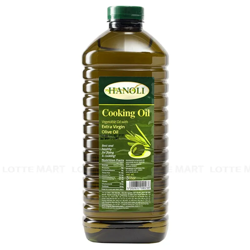 Dầu Ăn Oliu Hanoli Can 3L được nhập nguyên chai từ Hy Lạp – vùng đất được coi là cái nôi sản xuất dầu Oliu của thế giới, có thành phần 3/4 dầu Oliu siêu nguyên chất (ép lạnh) và 1/4 dầu hướng dương đảm bảo việc giữ được những thành phần tốt nhất trong dầu Oliu không bị phá hủy khi chiên rán ở nhiệt độ cao. Dầu giữ được 49% Polyphenol là hoạt chất vô cùng tốt cho tim mạch, giúp chống ung thư mà không có loại dầu hạt nào có thể có được. Tỉ lệ chất béo Trans là 0%.