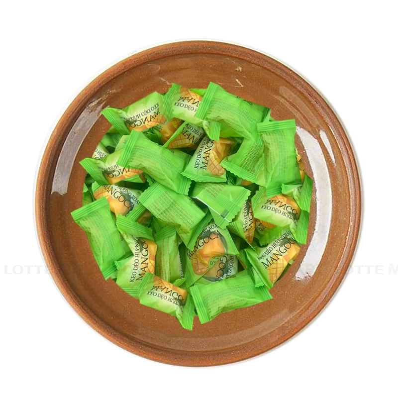 - Thành phần: đường kính, mạch nha, carrageenan, axit citric, axit malic, natri citrat, hương xoài, vani, titan đioxit, ...