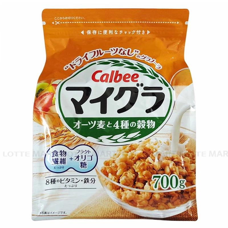 - Ngũ Cốc Calbee Vị Trái Cây Maigura là một hỗn hợp các hạt ngũ cốc khác nhau, bao gồm lúa mạch, ngô, lúa mì và đậu nành được kết hợp với hương vị trái cây tươi mát, thơm ngon, cung cấp năng lượng cho hoạt động hàng ngày.