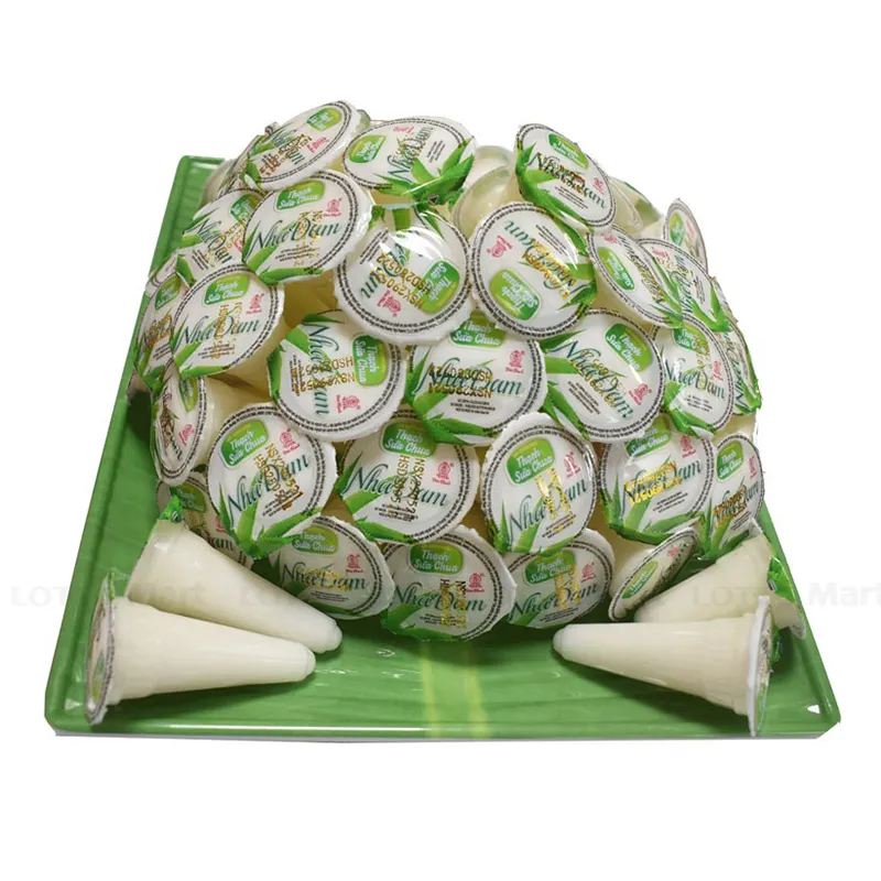 Thạch Sữa Chua Nha Đam Đức Hạnh với thành phần là các miếng nha đam tự nhiên với vị giòn ngọt thanh mát giúp có làn da mịn màng vóc dáng cân đối.