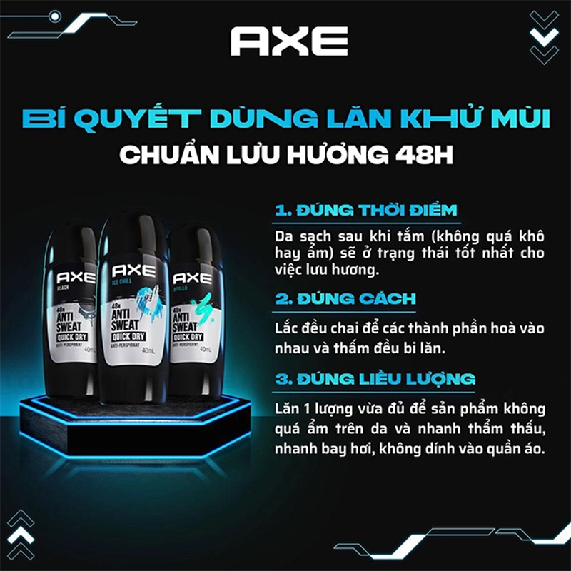 - Lăn Khử Mùi Axe Ice Chill là sản phẩm đến từ thương hiệu về mùi hương số 1 thế giới - Axe khi sở hữu gia tài mùi hương đầy khí chất, đa dạng phù với nhiều tính cách và sở thích.
