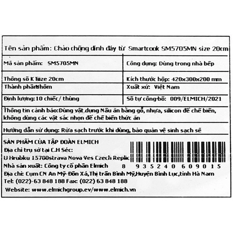Chảo Nhôm Elmich Đáy Từ SM-5705MN Size 20cm