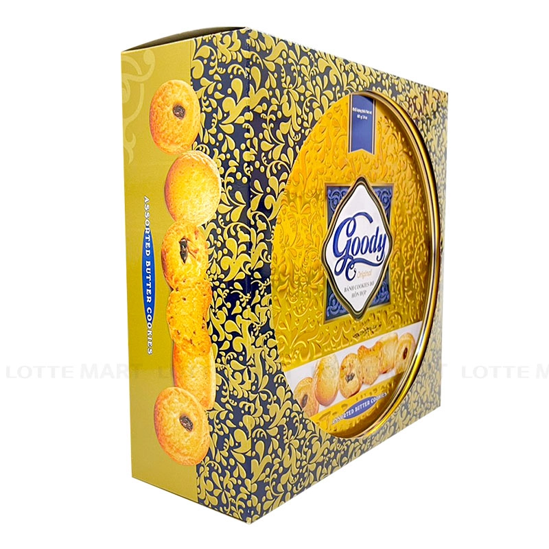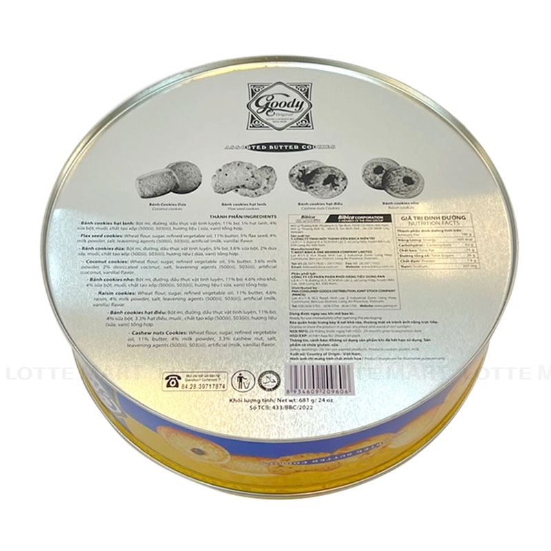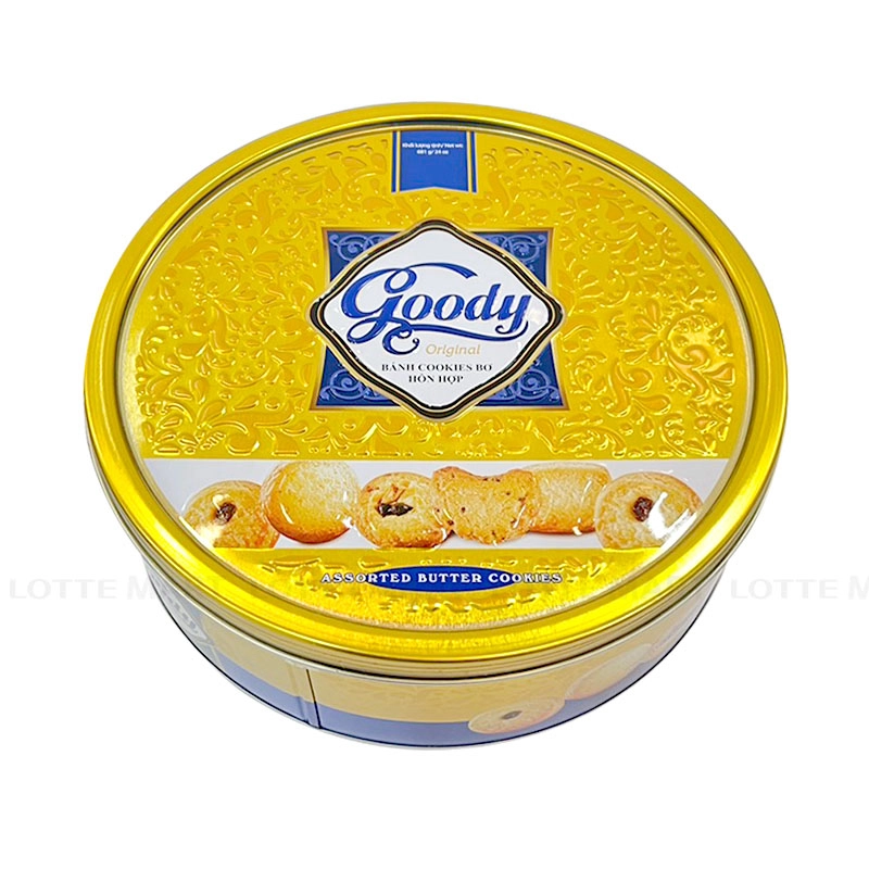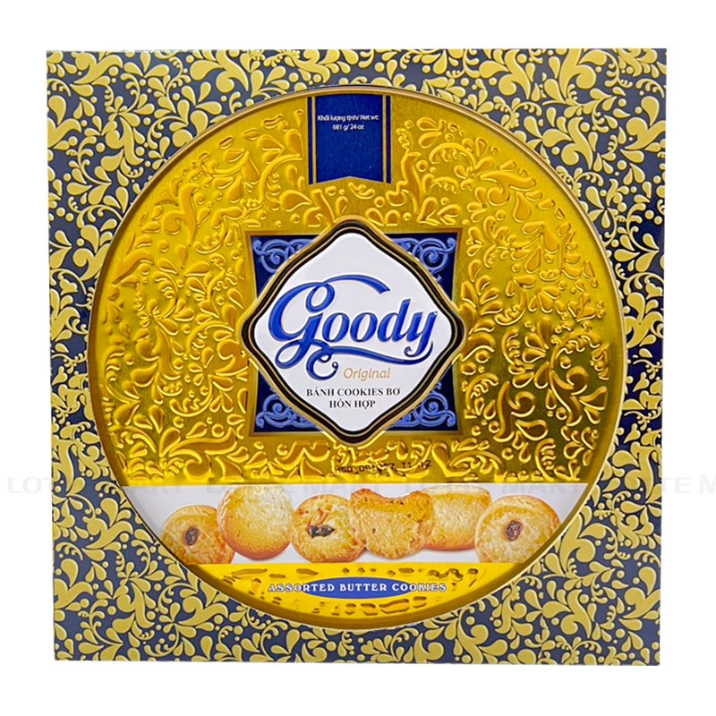 Bánh Goody là một món quà Tết sang trọng, ý nghĩa mang đến sự ngọt ngào, ấm áp dành tặng người thân, bạn bè tiếp đãi khách ngày đầu xuân thay lời cầu chúc một năm mới hạnh phúc đủ đầy. Thành phần: Bột mì, đường, bơ, chất béo thực vật (dầu), trứng (gà), đạm đậu nành, sữa bột, muối, chất tạo xốp (E500(ii), E503(ii)), 2% dừa sấy, 0,3% bột trà xanh, 0,3% nho khô, 0,3% sô cô la hạt, 0,3% hạt điều, hương ( dừa, sữa, vani) tổng hợp, màu tự nhiên (E141(ii)), màu thực phẩm tổng hợp (E160a(i)).