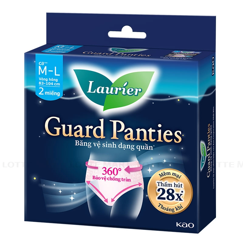 Băng Vệ Sinh Ban Đêm Laurier Dạng Quần Size M-L với thiết kế ôm trọn cơ thể, bảo vệ toàn diện 360 độ, chống tràn ngay cả khi bạn xoay trở mình vào ban đêm.
