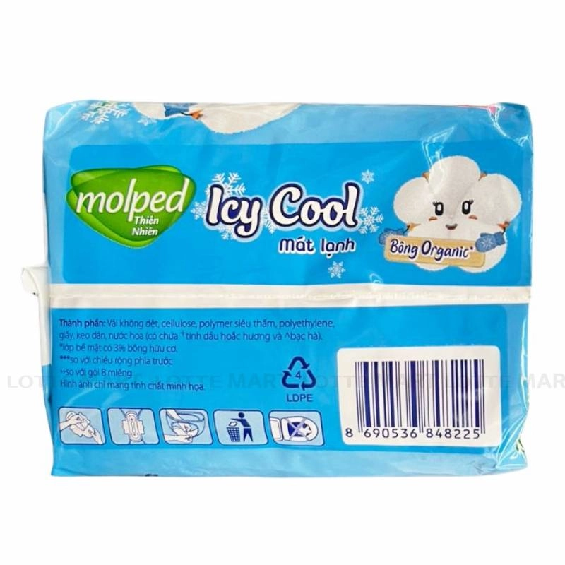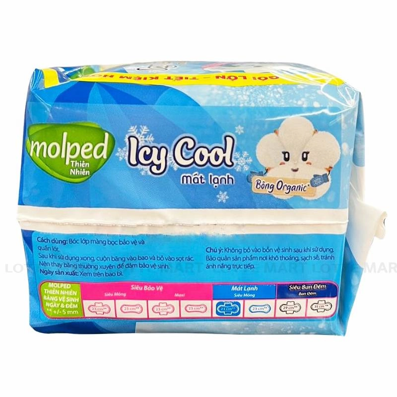- Băng Vệ Sinh Molped Cool Siêu Mỏng Cánh 23cm được thiết kế đặc biệt để đem đến hiệu quả kiểm soát mùi vượt trội và cảm giác tươi mát dễ chịu. Sản phẩm với sự kết hợp hài hòa giữa chiết xuất thiên nhiên và bạc hà, mang đến cho bạn cảm giác thoải mái và tươi mát.