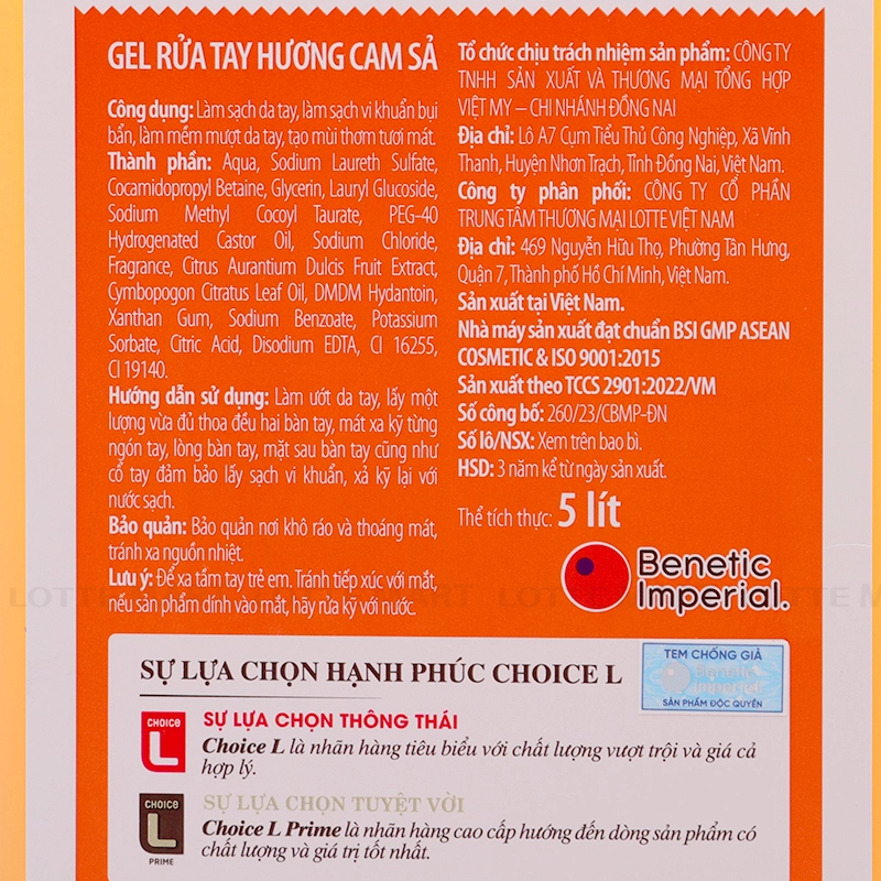 - Gel Rửa Tay Choice L Hương Cam Sả là sản phẩm đặc phẩm được sản xuất bằng công nghệ hiện đại, chất lượng được đảm bảo giúp bạn yên tâm khi sử dụng.