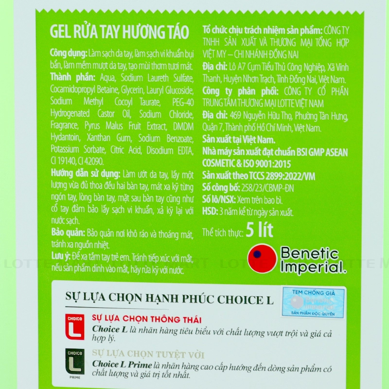 - Gel Rửa Tay Choice L Hương Táo là sản phẩm đặc phẩm được sản xuất bằng công nghệ hiện đại, chất lượng được đảm bảo giúp bạn yên tâm khi sử dụng.