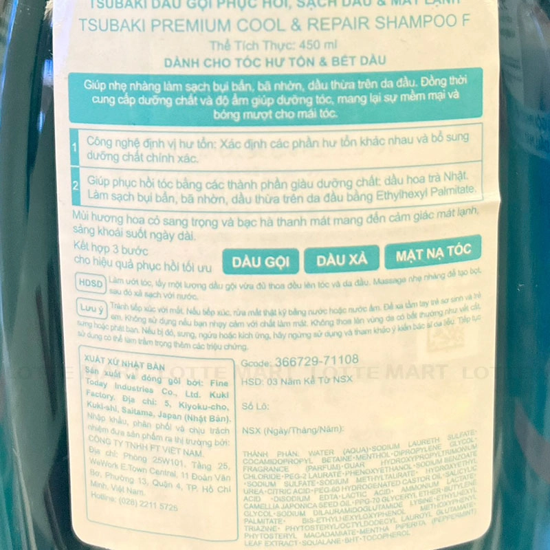 Dầu Gội Tsubaki Premium Cool Phục Hồi Tóc Chai 450ml
