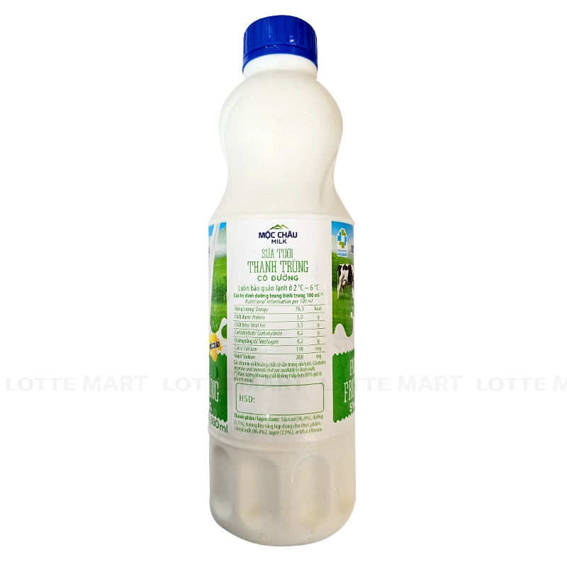 Sữa Tươi Thanh Trùng Mộc Châu Có Đường được chế biến từ 100% sữa bò tươi nguyên chất trên cao nguyên Mộc Châu - vùng đất nổi tiếng với truyền thống chăn nuôi bò sữa lâu đời và điều kiện khí hậu trong lành, mát mẻ quanh năm.