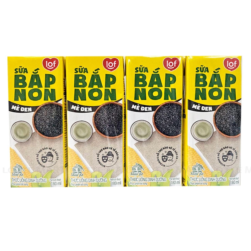 Sữa Bắp Non Lof Mè Đen Lốc 4 Hộp 180ml