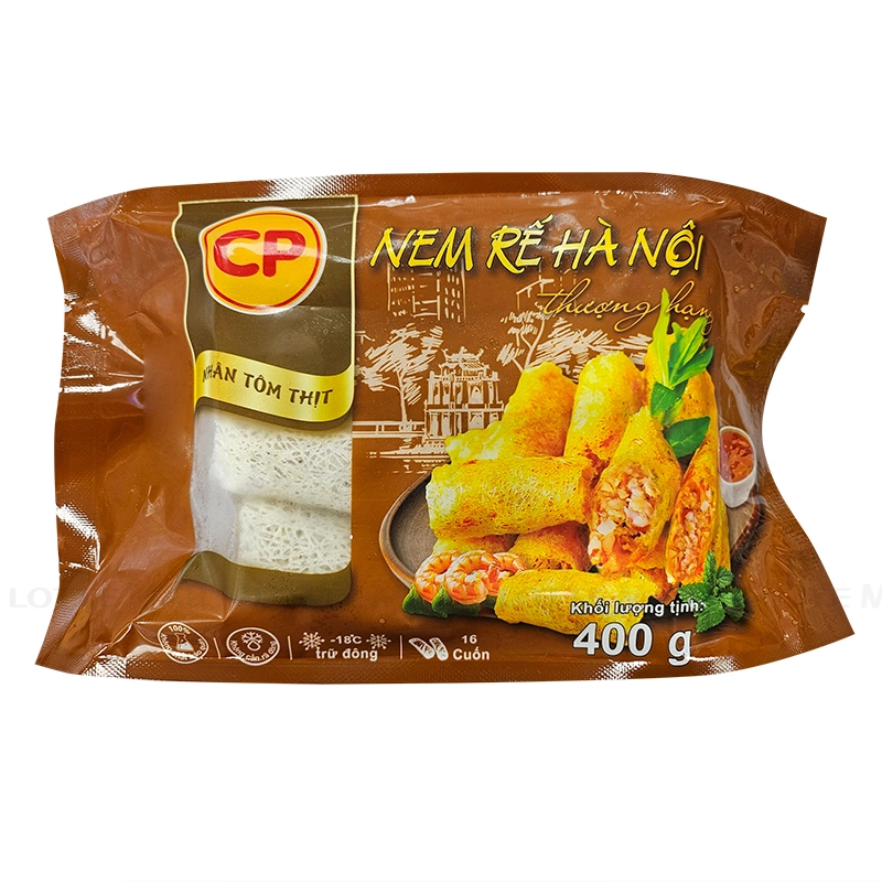 Nem Rế Thượng Hạng CP là món ăn tiện lợi được chế biến sẵn từ nguyên liệu chọn lọc, gồm thịt, rau củ và gia vị được cuốn trong lớp vỏ rế mỏng vàng óng. Khi chiên lên, nem giòn tan bên ngoài, mềm thơm bên trong, mang đến hương vị hấp dẫn.