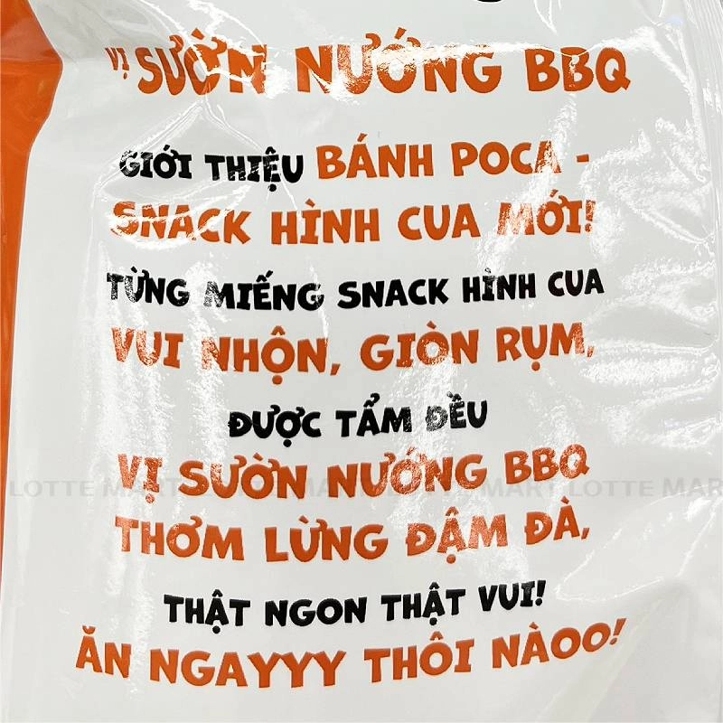 - Snack Hình Cua Poca Vị Sườn Nướng là một món ăn vặt với hình dáng chú cua mới lạ đến từ nhà Poca, mang đến trải nghiệm ẩm thực mới lạ cho mọi lứa tuổi.