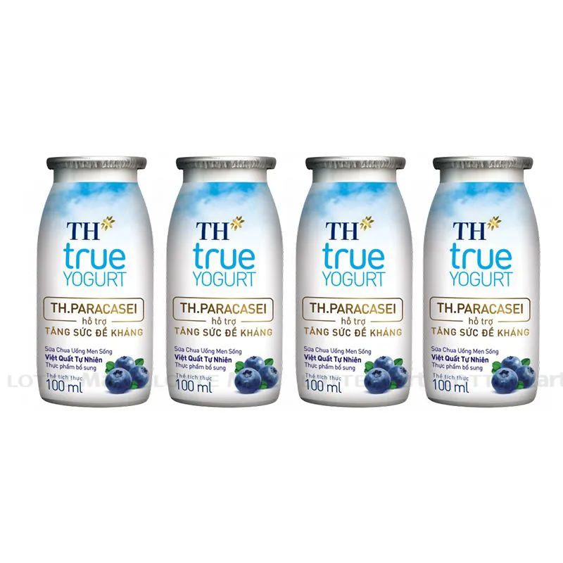 Sữa Chua Uống Men Sống Hương Việt Quất Tự Nhiên TH True Yogurt 100ML (Lốc 4 Chai)