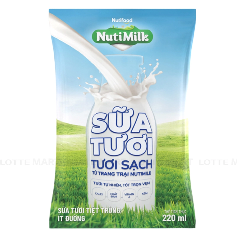Sữa Tươi Tiệt Trùng Ít Đường Nutimilk Bịch 220ml