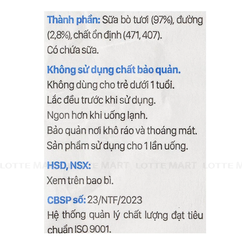 - Sữa bò tươi 97%, đường, chất ổn định.
