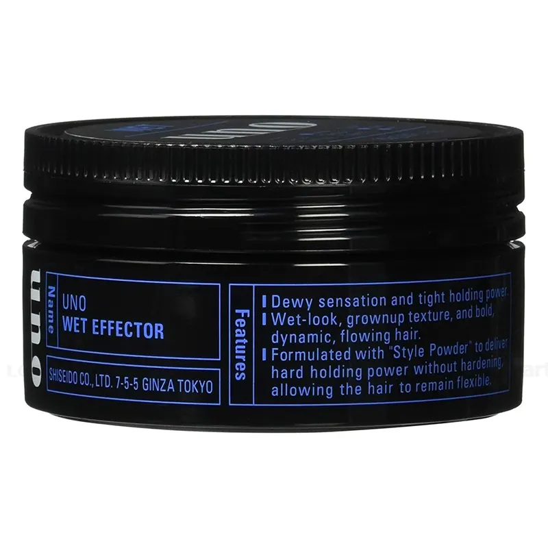 - Wax Vuốt Tóc Tạo Kiểu Bóng Mượt Lịch Lãm Wet Effector UNO 80Gr tạo kiểu bóng mượt, lịch lãm, giúp tạo độ phồng lâu dài, và giữ nếp tốt, dễ tạo kiểu linh hoạt đem đến sự tinh tế, trưởng thành với kiểu tóc bóng bẩy và bồng bềnh.