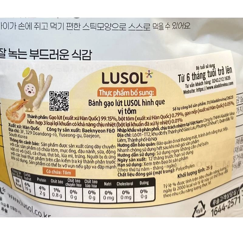 - Bánh Ăn Dặm Lusol Gạo Lứt Vị Tôm là sự lựa chọn lý tưởng cho những bữa ăn dặm của bé, được làm từ 100% gạo lứt cao cấp xuất xứ từ Hàn Quốc. Sản phẩm giữ nguyên mầm gạo, chứa tới 66% chất dinh dưỡng của hạt gạo, mang đến nguồn năng lượng dồi dào và vitamin cần thiết cho sự phát triển của trẻ. Với hương vị tôm tự nhiên, bánh không chỉ ngon mà còn bổ sung protein cho bé.