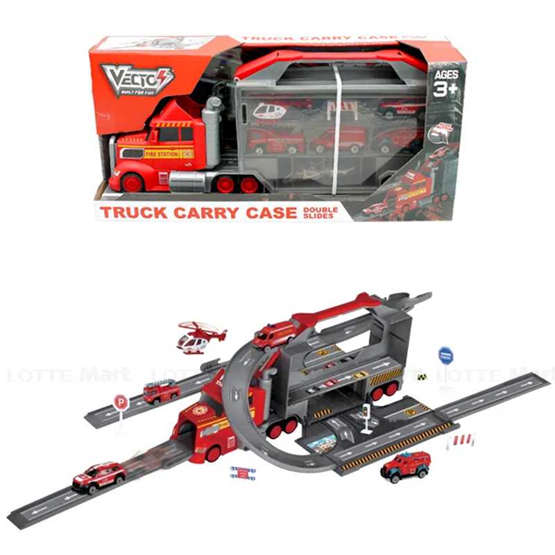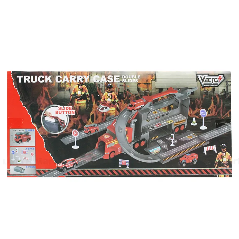 Bộ Đồ Chơi Mô Hình Xe Tải Cứu Hỏa Nhiều Ngăn Có Tích Hợp Đường Trượt Vecto VT111