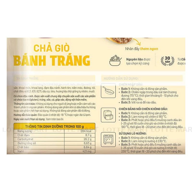 Sử dụng: Không cần rã đông, chiên ngập trong dầu 170 độ C khoảng 5 – 7 phút thấy vàng đều, vớt ra để ráo dầu là được, dùng chung với bún hoặc bánh hỏi, rau sống, nước mắm chua ngọt rất ngon. Bảo quản: Bảo quản ở nhiệt độ dưới -18 độ C hoặc ngăn đá tủ lạnh. Xuất xứ: Việt Nam.