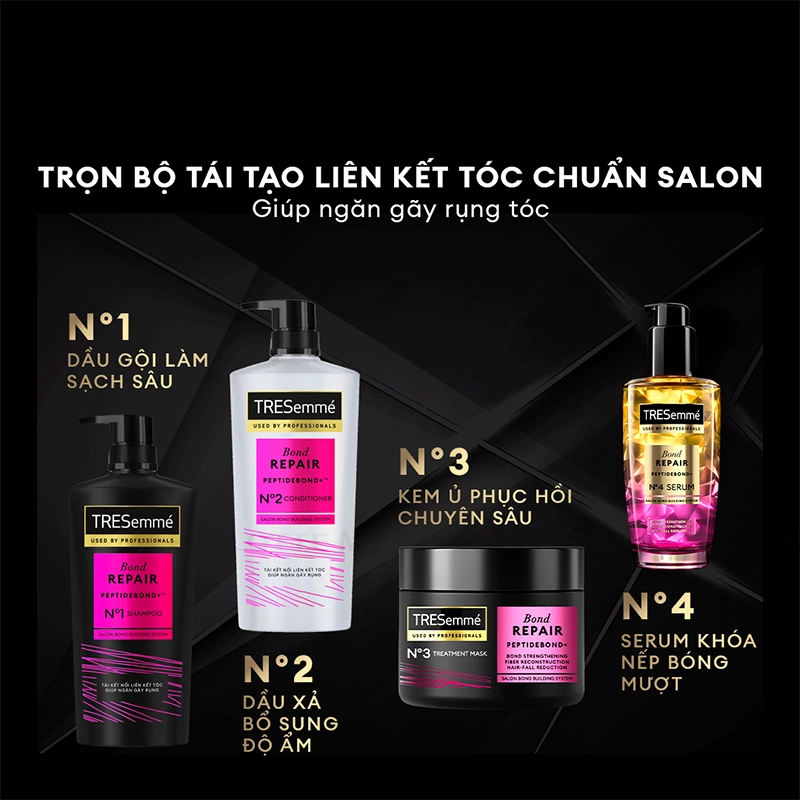 - Sử dụng trọn bộ sản phẩm TRESemmé Salon Rebond cho mái tóc đẹp chuẩn salon mỗi ngày.