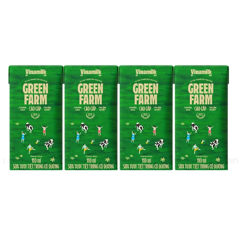 Sữa Tươi Tiệt Trùng Vinamilk Green Farm Có Đường Lốc 4 Hộp 110ml
