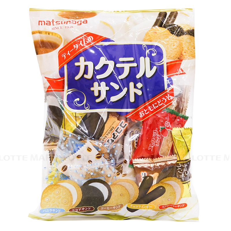 - Bánh Quy Kẹp kem Mastsunaga Gói 250G có lớp vỏ giòn rụm, kết hợp với nhiều loại nhân khác nhau như vị vani, vị dâu tây, vị cà phê, vị cacao và vị socola, tạo nên sự hòa quyện ngọt ngào và vừa miệng.