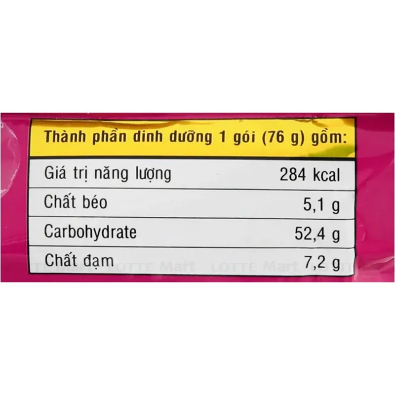 - Các gói gia vị - Dầu cọ, xi rô từ ngô, đường, chất điều vị, nước tương, các gia vị, muosi, phẩm màu tự nhiên, lá chanh, tôm,...
