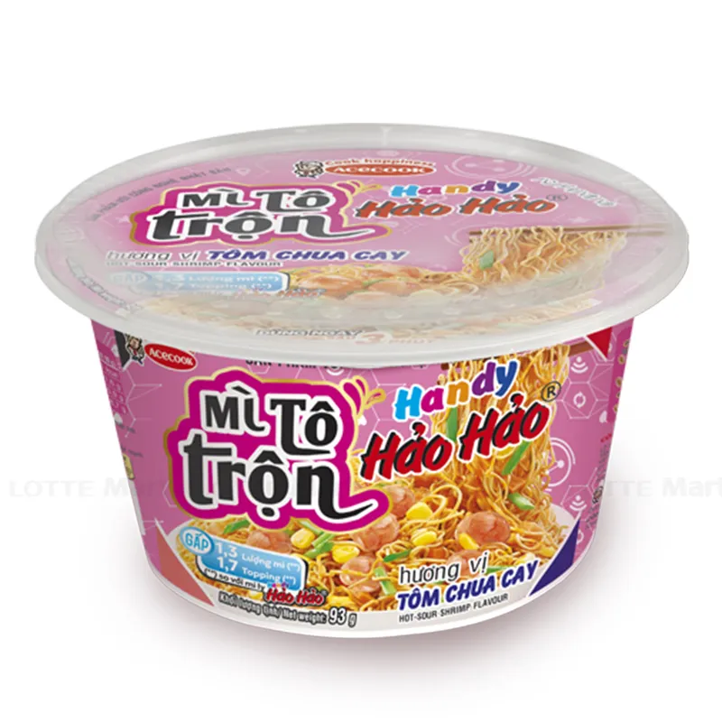 - Sản phẩm thơm ngon hấp dẫn, được sản xuất theo công nghệ Nhật Bản, quy trình hiện đại đảm bảo an toàn. Mì trộn Handy Hảo Hảo hương vị Tôm chua cay dạng tô tiện lợi phù hợp sử dụng mọi lúc mọi nơi.