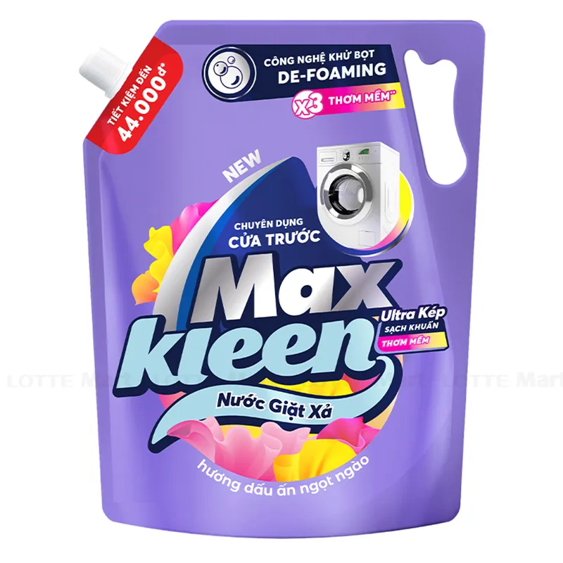 Nước Giặt Xả MaxKleen chuyên dụng cho máy giặt cửa trước mới với công nghệ De-Foaming giúp khử bọt nhanh vượt trội, kết hợp hài hòa 2 sức mạnh: