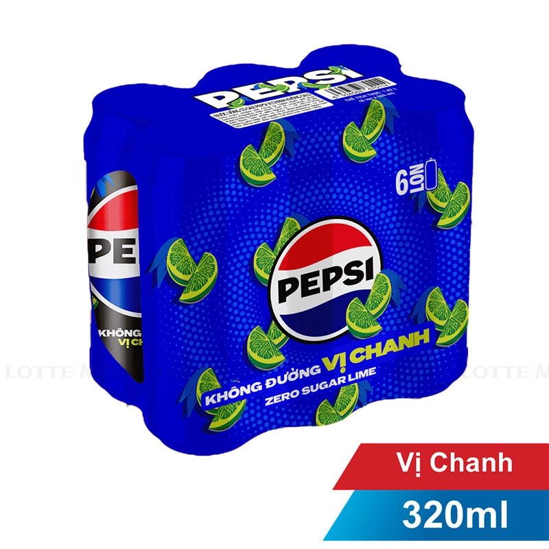 Lốc 6 Lon Nước Ngọt Pepsi Vị Chanh Không Calo 320ml