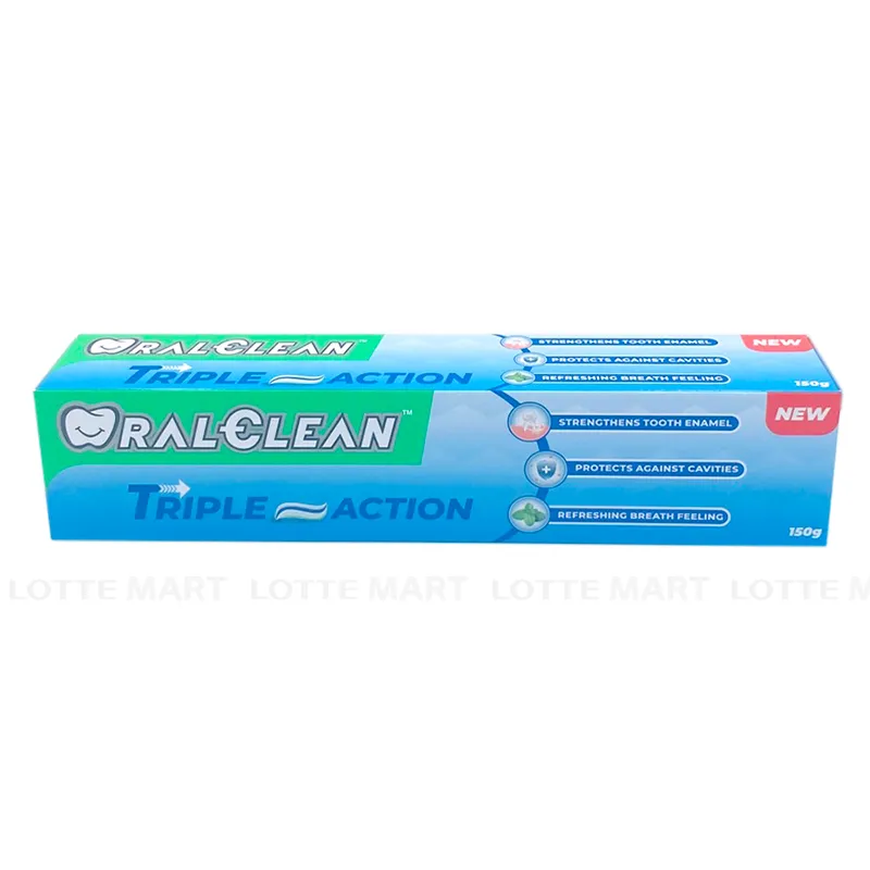 Kem Đánh Răng Oralclean Triple Action giúp loại bỏ cặn thức ăn, ngừa sâu răng đồng thời làm trắng răng, cho hàm răng chắc khỏe, trắng bóng tự nhiên.