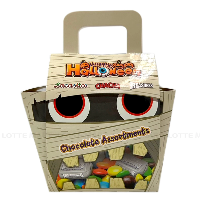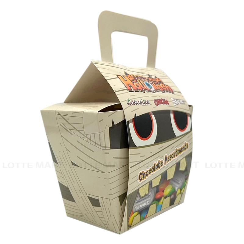 - Socola Vali Halloween không chỉ thu hút với hương vị thơm ngon mà còn ấn tượng với thiết kế vui nhộn, đặc trưng cho không khí lễ hội. Hộp socola được trang trí bằng hình ảnh xác ướp đầy màu sắc, khiến nó trở thành món quà thú vị cho các bé trong dịp Halloween. Đây là lựa chọn hoàn hảo để tạo thêm niềm vui cho buổi tiệc Halloween.