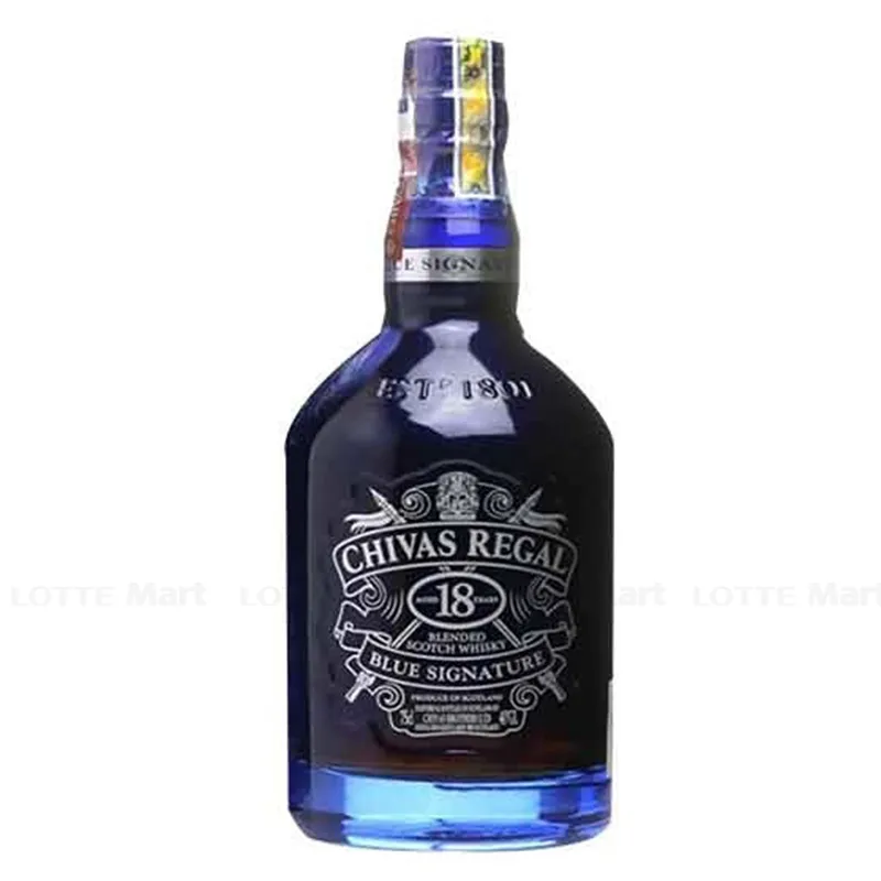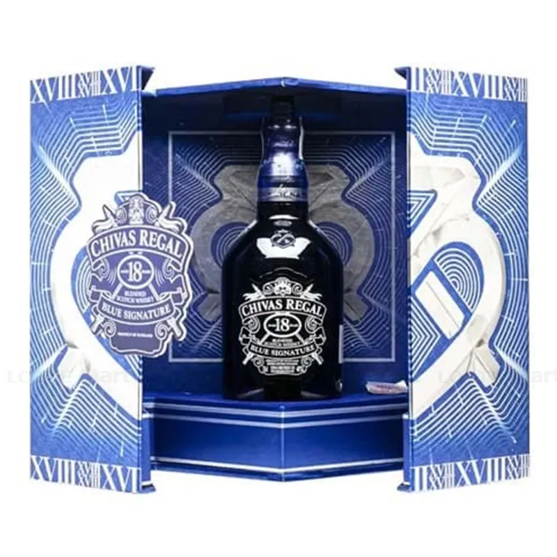 - Rượu Chivas Whisky Regal 18 Blue có nồng độ cồn là 40%, hương vị độc đáo của rượu được pha trộn từ 85 loại whisky độc đáo đã tạo ra rượu Chivas Regal 18 Blue Signature khó có thể cưỡng lại. Hậu vị của Chivas 18 thường nhẹ nhàng, êm ái và kéo dài trong khoang miệng. Đối với những người yêu thích hương vị của rượu Chivas thì Chivas Regal 18 Blue Signature đích thực là loại rượu mà bạn nên sở hữu trong bộ sưu tập rượu Whisky.