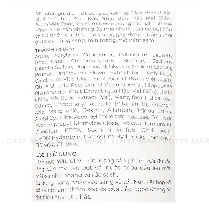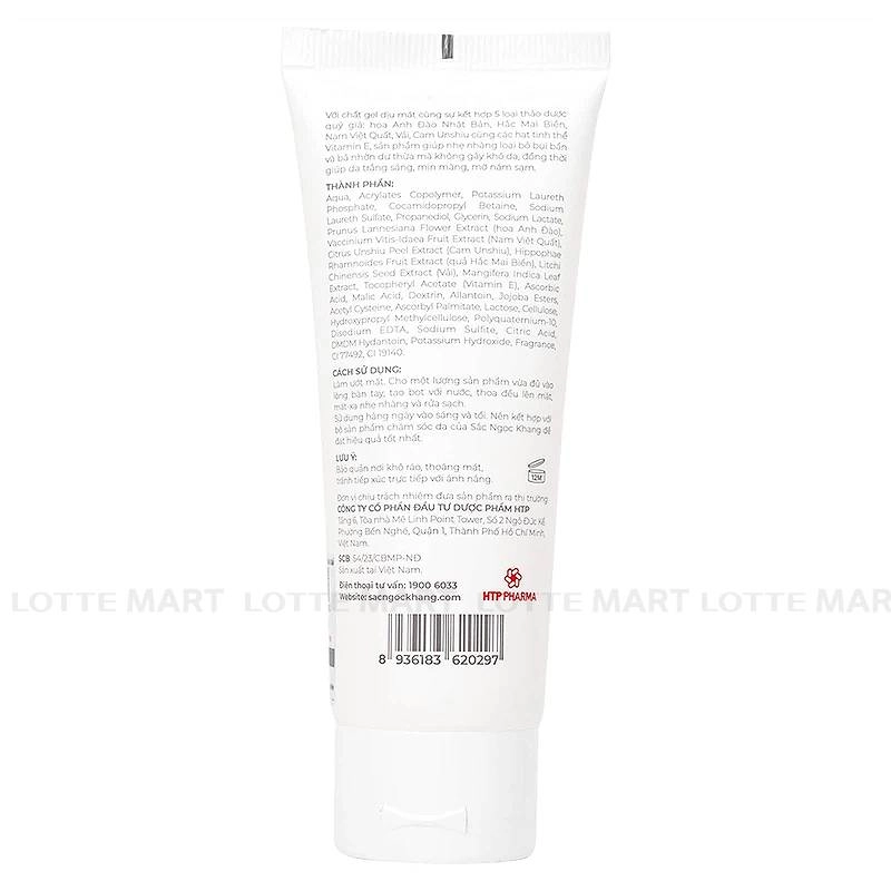 - Sữa Rửa Mặt Thảo Dược Sắc Ngọc Khang đặc biệt với công nghệ làm sạch kết hợp dưỡng trắng nhờ phức hợp SNK White độc quyền từ Nhật Bản chứa 5 loại thảo dược quý: Hoa Anh Đào, Nam Việt Quất, Vải, Hắc Mai Biển, Cam Unshiu.