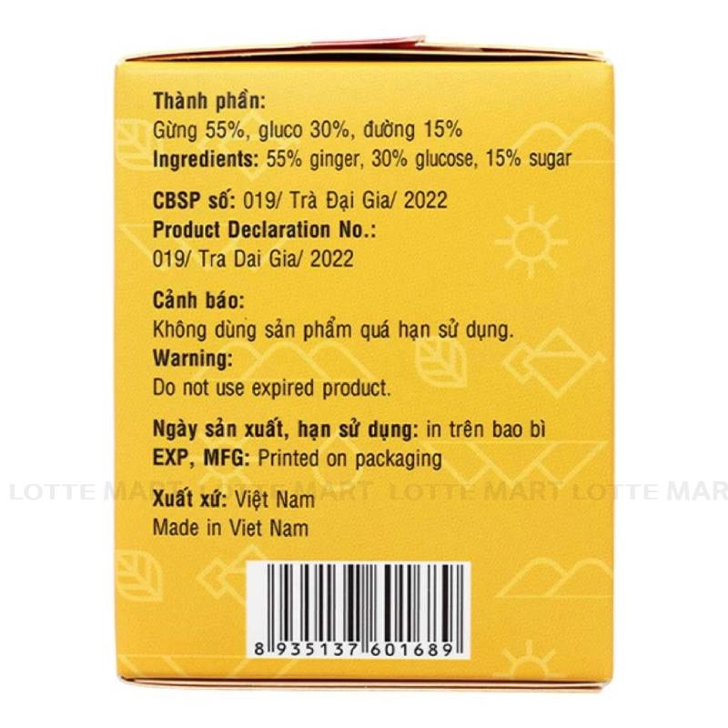 Trà Gừng Hòa Tan Trà Đại Gia là một thức uống quen thuộc chứa nhiều vitamin, khoáng chất và các chất chống oxy hóa rất tốt cho sức khỏe. Ngoài ra đây còn là loại trà có công dụng hỗ trợ khi bị cảm lạnh, chống buồn nôn, giảm đau bụng do ăn thức ăn, giúp tăng cường sức đề kháng và giữ ấm cho cơ thể.