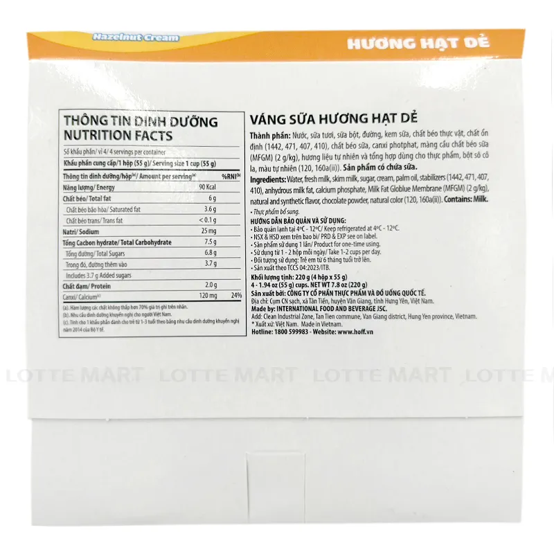 Váng Sữa Hoff Hạt Dẻ Lốc 4 Hũ 55G