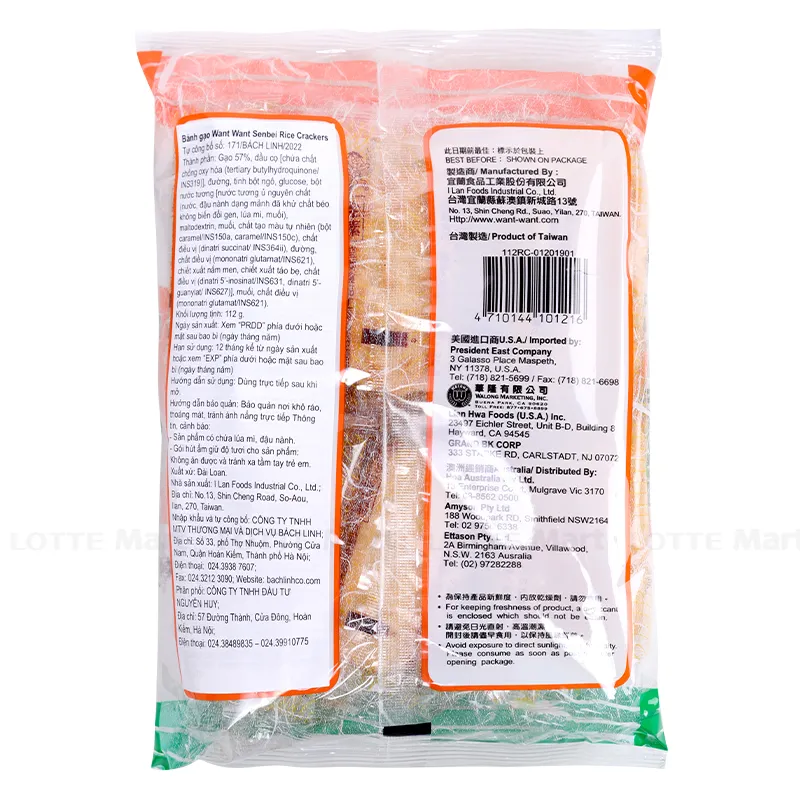 - Bánh gạo Want Want Senbei được đóng gói nhỏ gọn, dễ dàng và tiện lợi trong việc sử dụng, bảo quản.