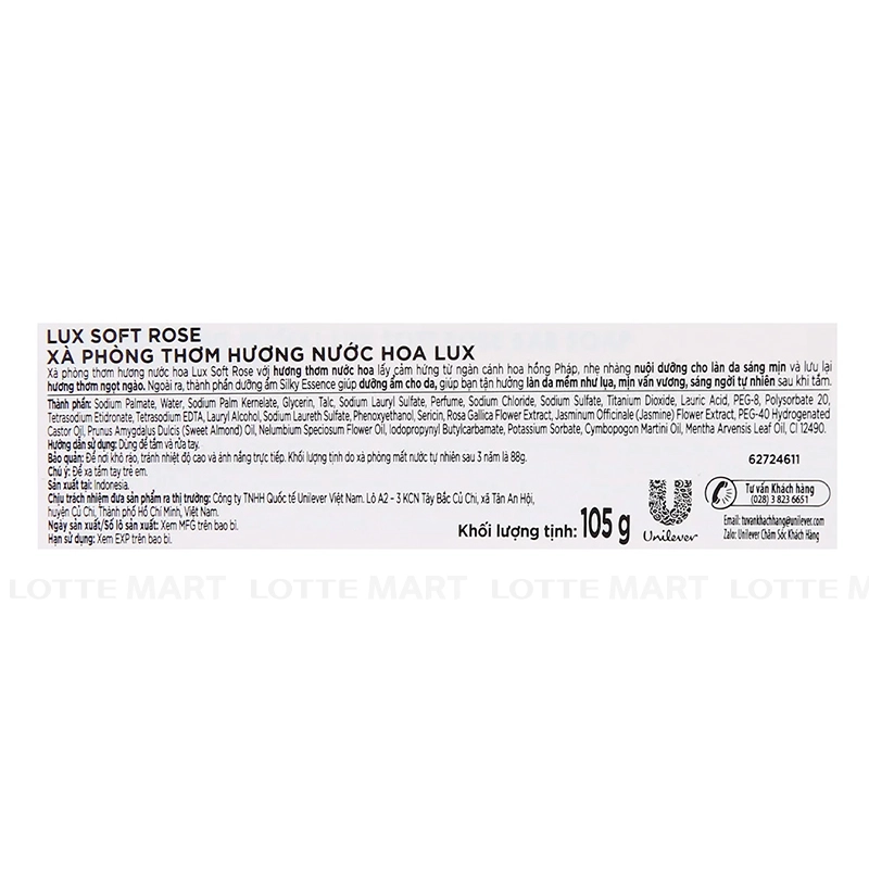 - Xà Bông Cục Lux Hoa Hồng Mềm Mại 105G với hương thơm nước hoa lấy cảm hứng từ ngàn cánh hoa hồng Pháp, giúp nuôi dưỡng làn da sáng mịn và lưu lại hương thơm ngọt ngào.