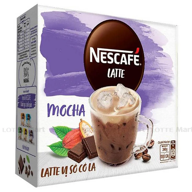 - Cà phê hòa tan NESCAFÉ Latte Vị Socola Hộp 10 gói x 24g (Mocha Cà Phê) được truyền cảm hứng từ các chuyên gia pha chế hàng đầu, mang đến trải nghiệm độc đáo cho người dùng bởi hương vị socola đen đậm đà quyến rũ đặc trưng hòa quyện cùng cà phê Latte hiện đại tạo nên thức uống ngon khó cưỡng, nâng tầm ly cà phê nhà làm ngon chuẩn vị quán.