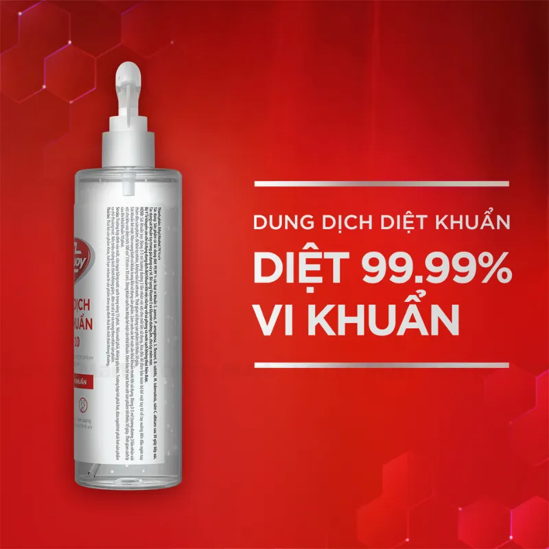 Công dụng: Diệt khuẩn tay, bề mặt dùng trong gia dụng và y tế. Chế phẩm có tác dụng diệt 99,99% các loại vi khuẩn S. aureus, P. Aeruginosa, S. flexneri, B. subtilis, M. Tuberculosis và nấm C. albicans sau 30 giây tiếp xúc.