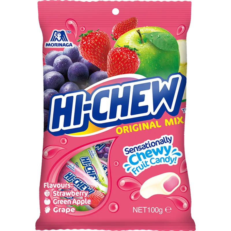 Kẹo Mềm Morinaga Hi-Chew Trái Cây 90g với 4 hương vị tuyệt vời: dâu tây, táo xanh, xoài và nho Mỹ cùng màu sắc bắt mắt, vị chua chua ngọt ngọt, mịn màng, hơi dai. Sản phẩm thích hợp để làm món tráng miệng, ăn vặt.