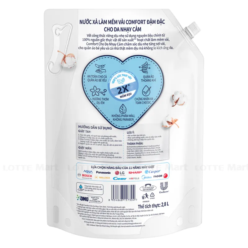 - Comfort cho da nhạy cảm chăm sóc dịu nhẹ từng sợi vải, cho quần áo bé yêu và cả nhà thật mềm dịu mà không lo kích ứng da.