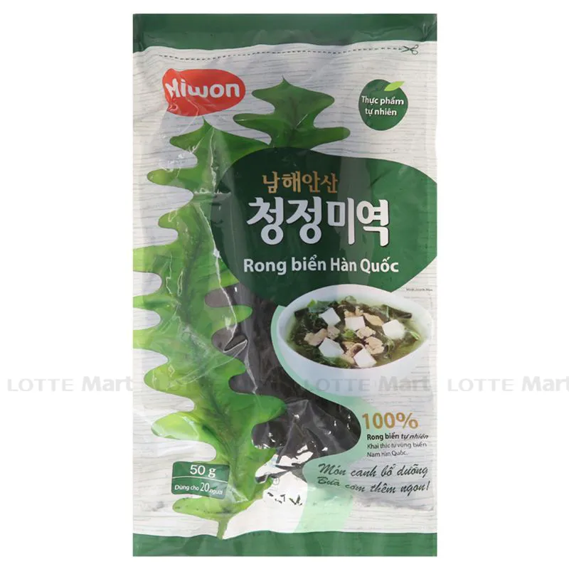 - Rong biển khô Miwon là sản phẩm chất lượng cao đến từ Hàn Quốc. Sản phẩm được sản xuất từ những nguyên liệu đã qua chọn lọc kĩ càng cùng công thức chế biến đặc biệt, hương vị thơm ngon hấp dẫn cho món canh, phù hợp với mọi thành viên trong gia đình.